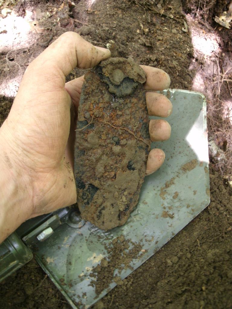 Ich habe die Schaftkappe grob gesäubert und einige neue Bilder eingestellt. Als Hintergrundinformation. Ich habe die Schaftkappe genau in dem Loch mit den 8x58R Krag-Jörgensen Hülsen gefunden.