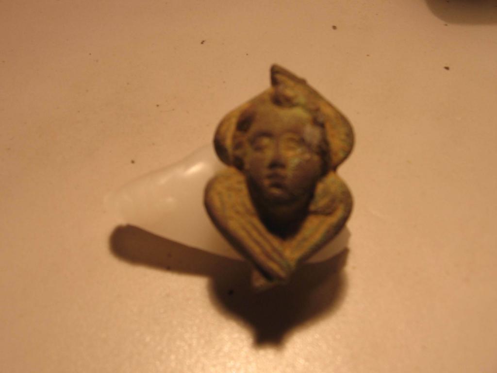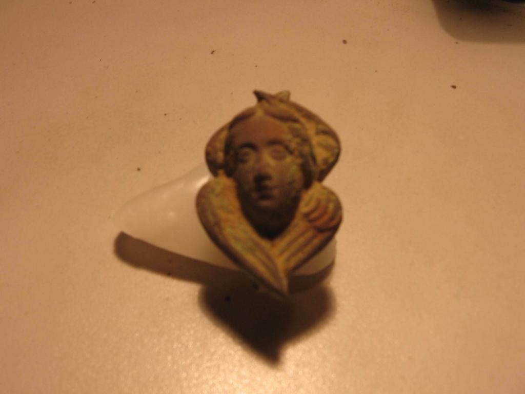 Auf beiden Seiten ein anderes profiliertes Gesicht, von Flügeln umkränzt. Das Stück ist massiv. Ich kann mir auf dieses nette Teil keinen Reim machen - es scheint vollständig zu sein und somit kein Anhänger o.ä. zu sein. Doch was ist das? Und von wann?