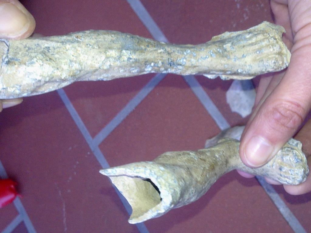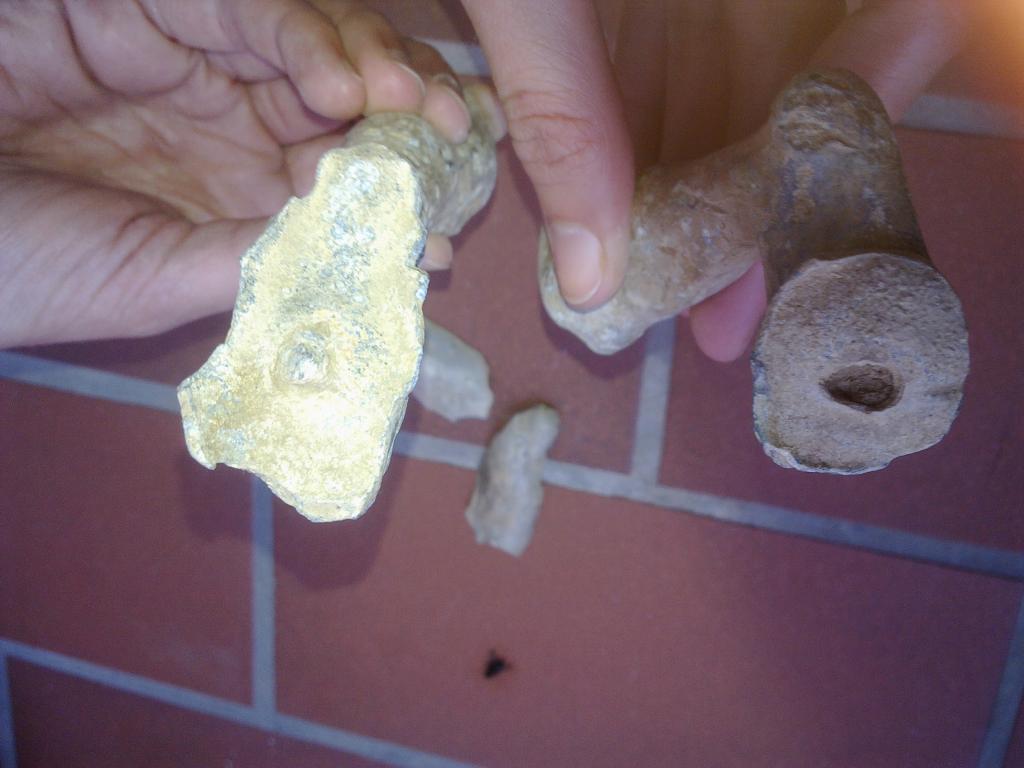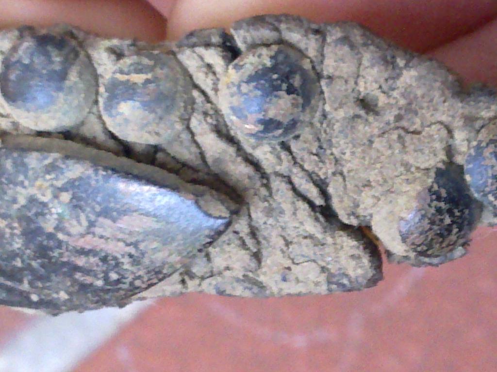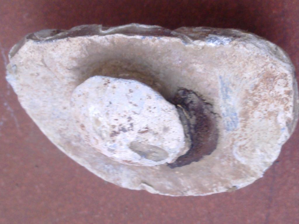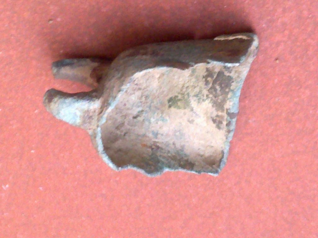 hab auf dem gleichem feld auch noch diese glocke (foto 5-6) und diesen "deckel" (foto 7-9) gefunden. die glocke ist scheinbar aus bronze..und an dem komischn "deckel" ist an der unterseite meiner meinung nach noch ein stück "leder" oder sowas...(dichtung?)