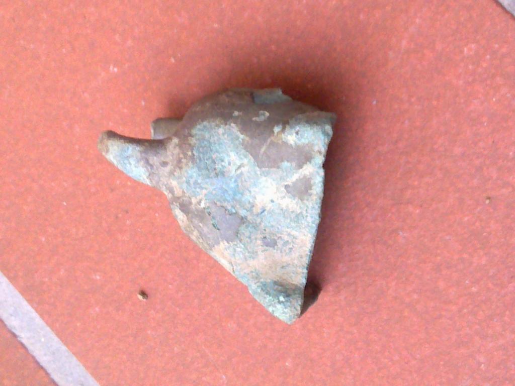 hab auf einem anderen feld noch diesen lederbeschlag gefunden (foto 10-12). man kann auf der rückseite gut sehen wie die nieten durchs leder gehen...was war das?..und wie alt?