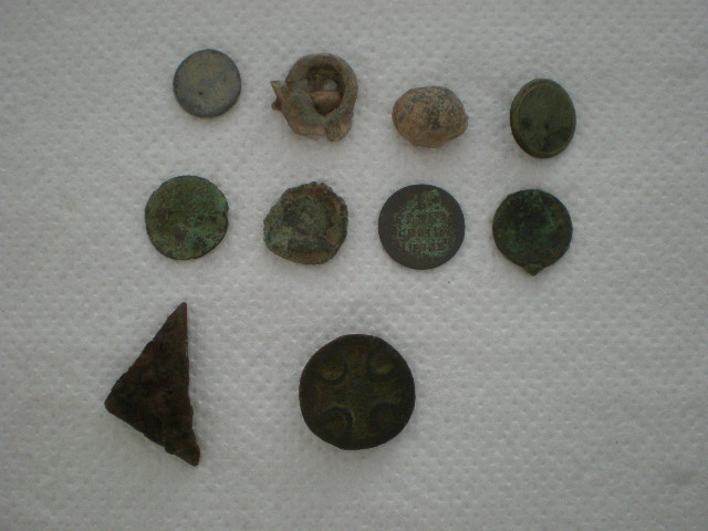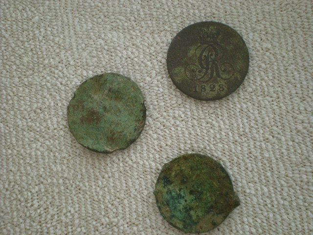 Bin aber voll Stolz auf meine Ausbeute !!! Denke das eine ist sogar eine römische Münze ? aber sehr schlecht :-( Lohnt es sich die hier noch ins Münzforum einzustellen?Am besten ist die Fibel ? dacht erst an einen Knopf. Oder ist es doch ein alter Knopf ? Kann jemand was dazu sagen ? Auch über die drei Kupferleichen freue ich mich, weil die Scheidemünze von 1828 doch recht gut ist und bisher meine beste Münze ist.