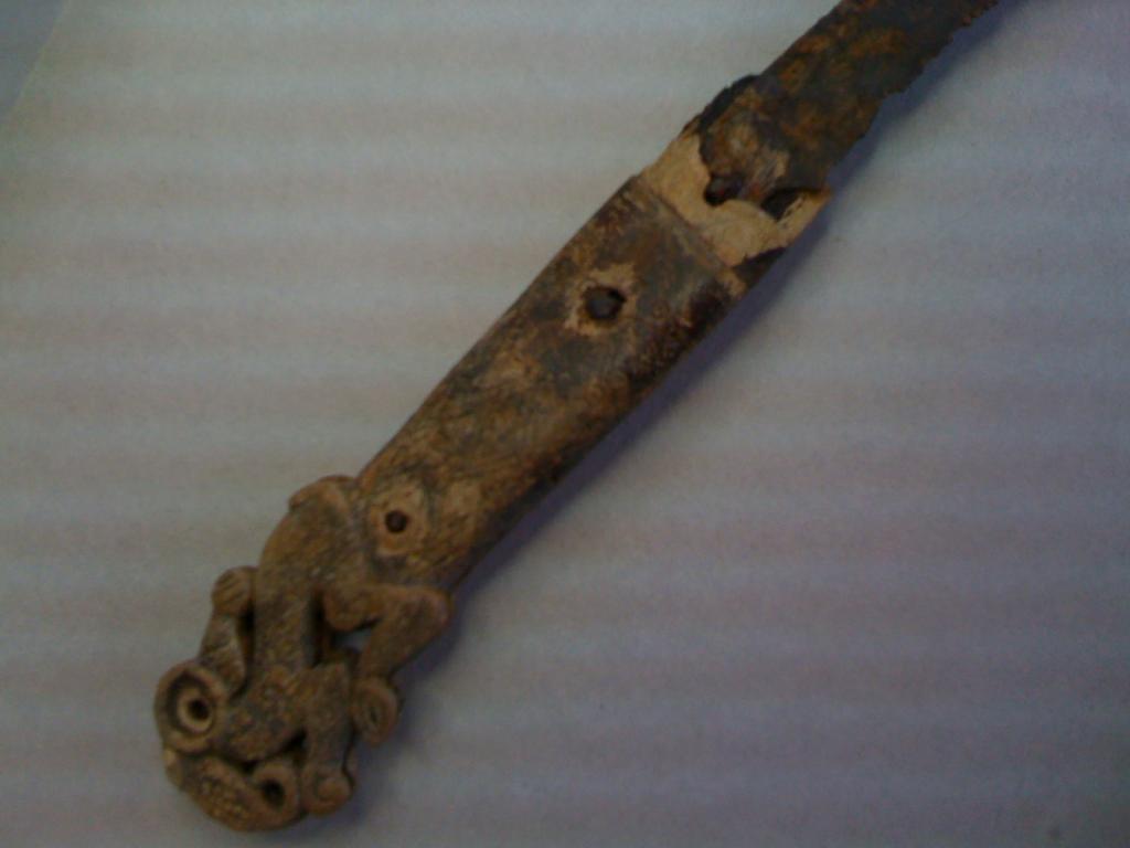 Einer sagte mir, dass das Messer angeblich aus der sarmatischer Ecke (circa 1800-2200 Jahre her) oder sogar noch älter, aus der skythischen Ära sein kann (hier muss man ja sich etwa 2700-3300 Jahre zurücksetzen). Ich habe keine Ahnung, wie sich überhaupt ein solches Messer verhält, wenn so lange liegt. Ich weiß es ja nicht, auf jeden Fall der Hirsch darauf ähnelt sich sehr an die Skythenkultur (besser gesagt ost-fernost), sowas habe ich schon des öfteren in Büchern gesehen.