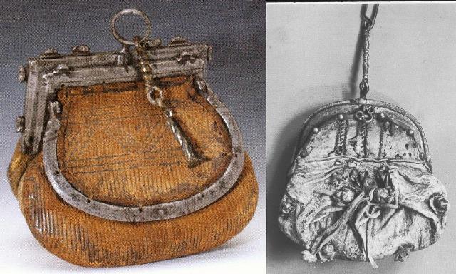 Gebräuchlich etwa vom 13.- 17. Jhd. aus Bronze oder Eisen, die Bügel waren wohl so etwas wie Vorläufer unser Schnapp-Portemonnaies.