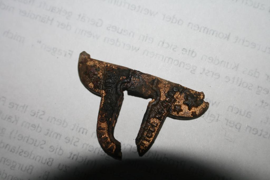 4. Eine Stück einer Schnalle bzw. Verzierung, möglicherweise vergoldet..Nach der Reinigung halte ich das Stück jedoch für neuzeitig, da es gestanzt ist.