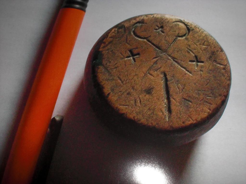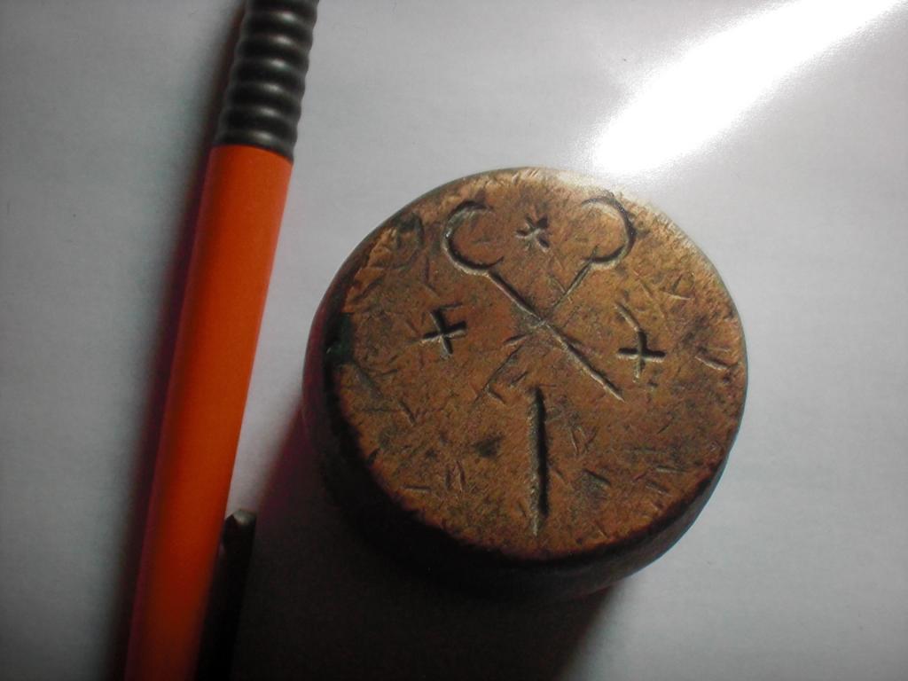 wer hat schon mal so etwas gesehen? Ein Bekannter hat das Teil bei Bauarbeiten im Erdreich gefunden. Leider habe ich kein anderes Bild weiter zur Verfügung gestellt bekommen. Könnte es sein das es sich um eine Petschaft handelt oder vielleicht um ein Gewicht oder doch um etwas ganz anderes? Material sollte Bronze sein. Als Größenvergleich liegt ein Kugelschreiber daneben. Mit weiteren Maßen und Gewicht kann ich leider im Moment nicht dienen!