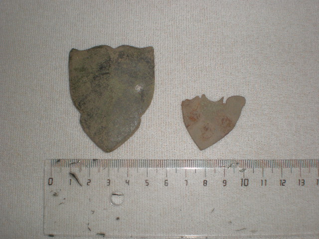 In der einen Stunde sind diese beiden Wappen / Schilder Beschläge von mir geborgen worden. Leider keine Gravur zu sehen. Evtl. mal ein Schild vom Trecker - Treckermarke ? Denke für einen Wanderstock ist das eine zu groß und nicht stark gewölbt.