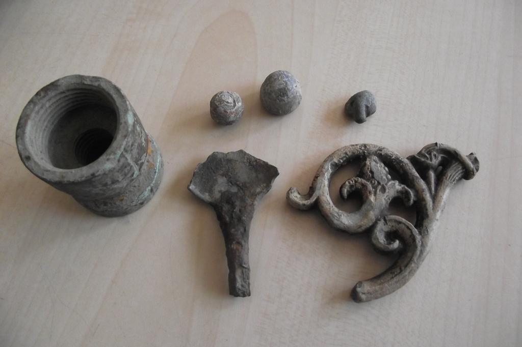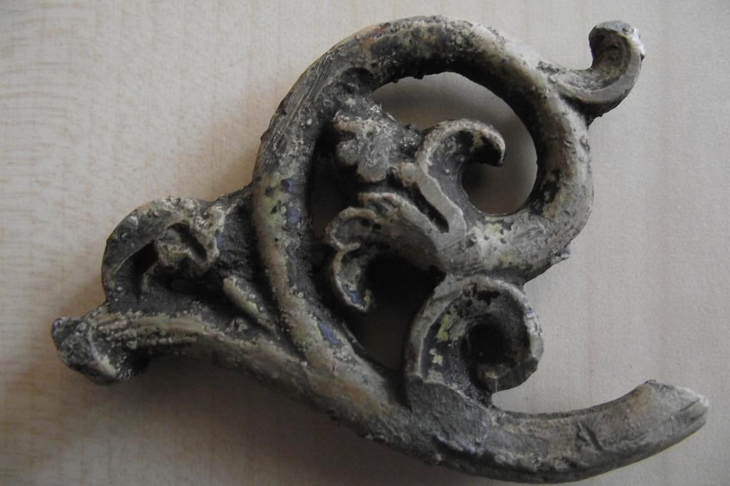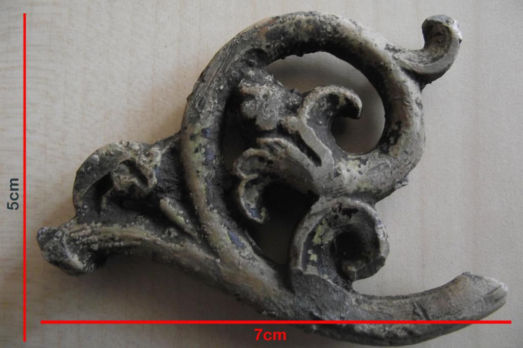 Dabei wie immer Musketenkugeln, ich denke ein Bruchstück eines Löffels dieses komische Runde Ding worüber ich mir kein Bild machen kann, und halt dieses verschnörkelte Etwas...