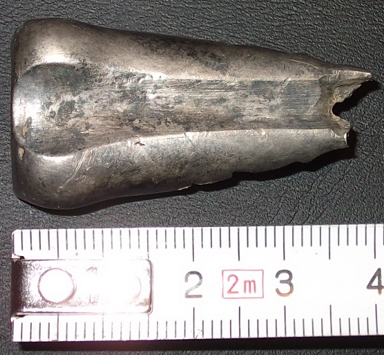Ich tippe auf den vorderen Abschluß eines Vorderladers. Die große Ausformung war für den Lauf und die kleine für den Ladestock.
