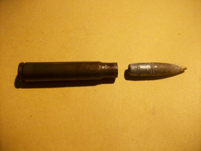 zugegeben, ich bin kein mun profi... allerdings hab ich hier sehr wohl eine patrone aus dem 2. wk mit BLEIgeschoss und kupferhülse. dass es stahlhülsen gab, ist ja bekannt.... hier nun also quasi der beweis.