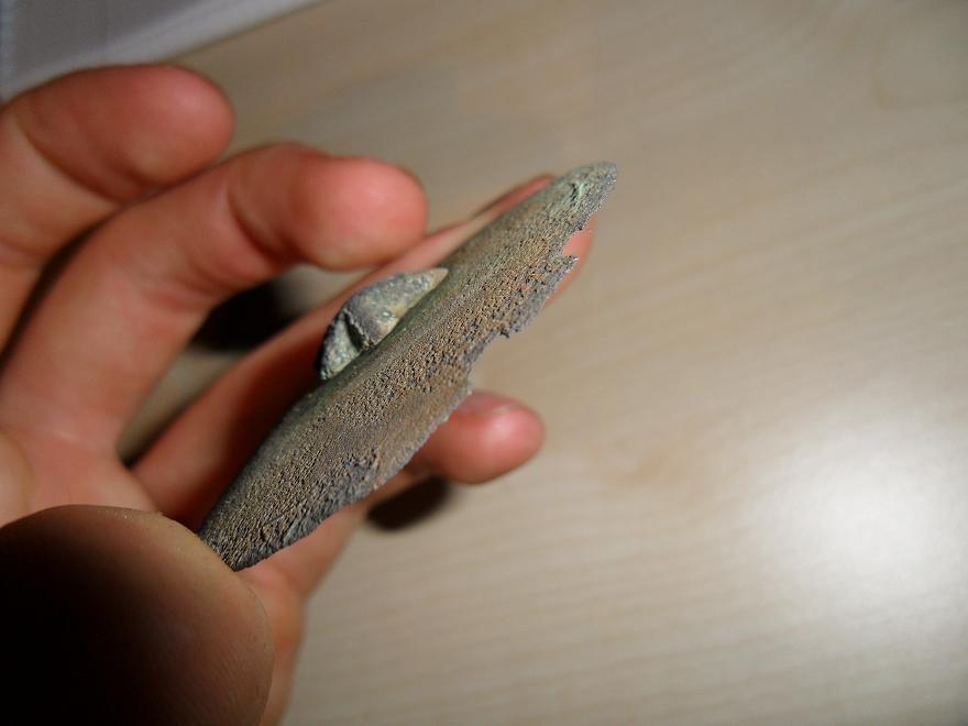 Bin dann bis die ersten Äcker gedroschen werden auf die große Wiese und hab am Rande eines Waldes der schon von den Kelten bewohnt war auf dem Heimweg dieses Objekt mit einem beweglichen Teil in der Mitte gefunden.