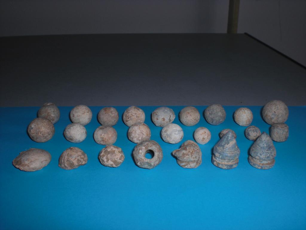 Musketenkugeln mit Loch sind meistens Spinnwirtel oder Anglerbleie (letzteres schließe ich bei Deiner Lochmumpel allerdings aus).