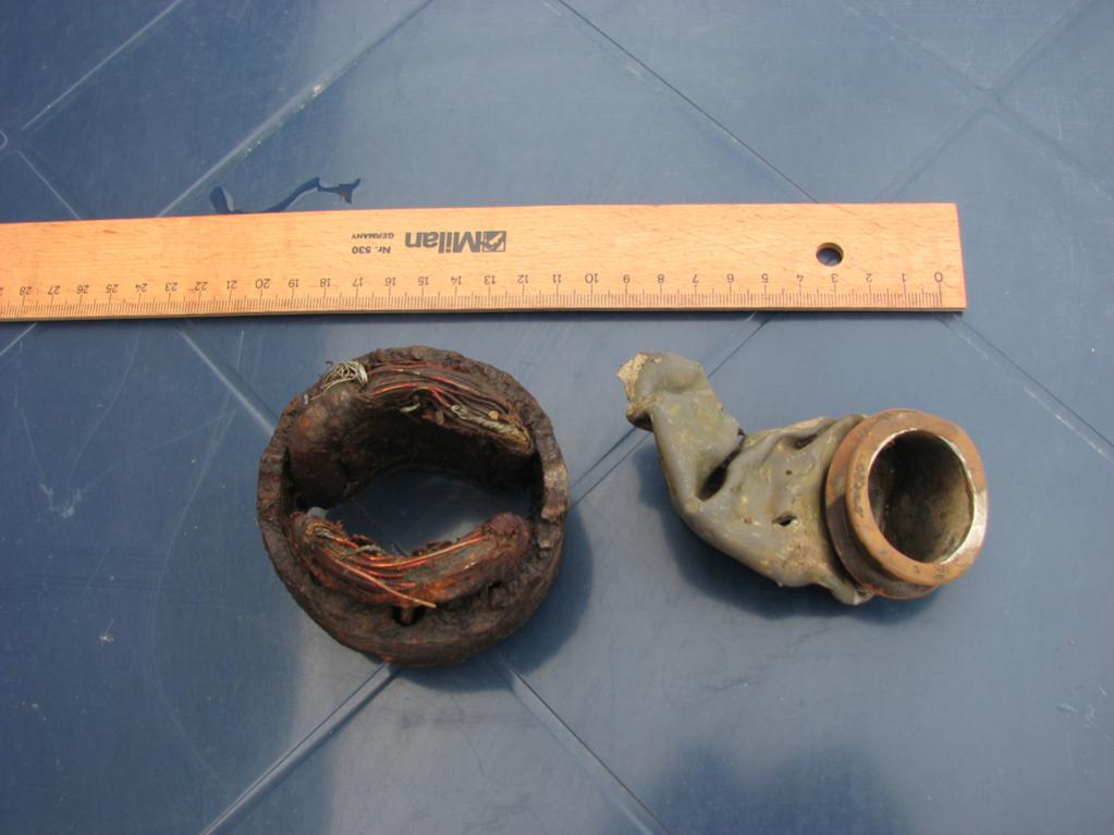 Teilen (genietete Alufragmente) kam ein Teil mit Typenschild zum Vorschein.