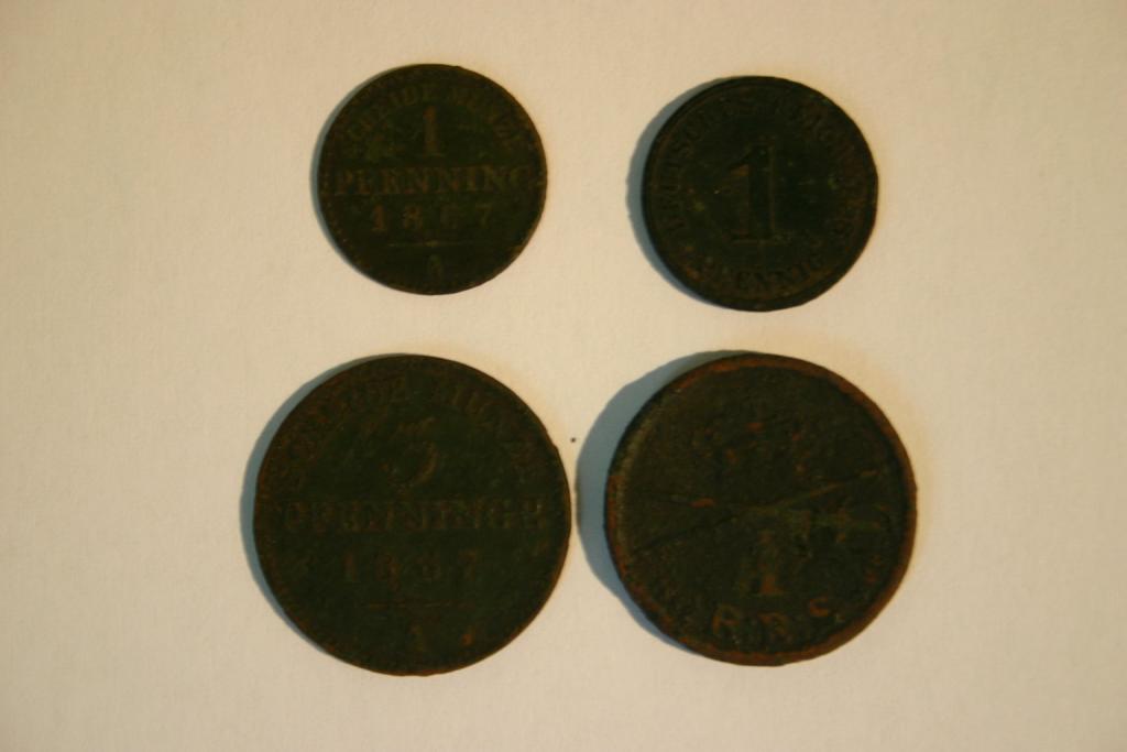 Hmm, das mit den Münzen ist leicht erklärbar, Schleswig Holstein gehörte bis 1864 bis Ende des 2. Deutsch-Dänischen Krieg (1. Feb. - 30. Okt. 1864), auch Zweiter Schleswigscher Krieg oder Zweiter Schleswig-Holsteinischer Krieg genannt zum Königreich Dänemark.