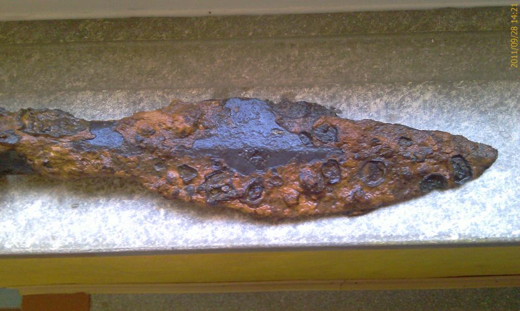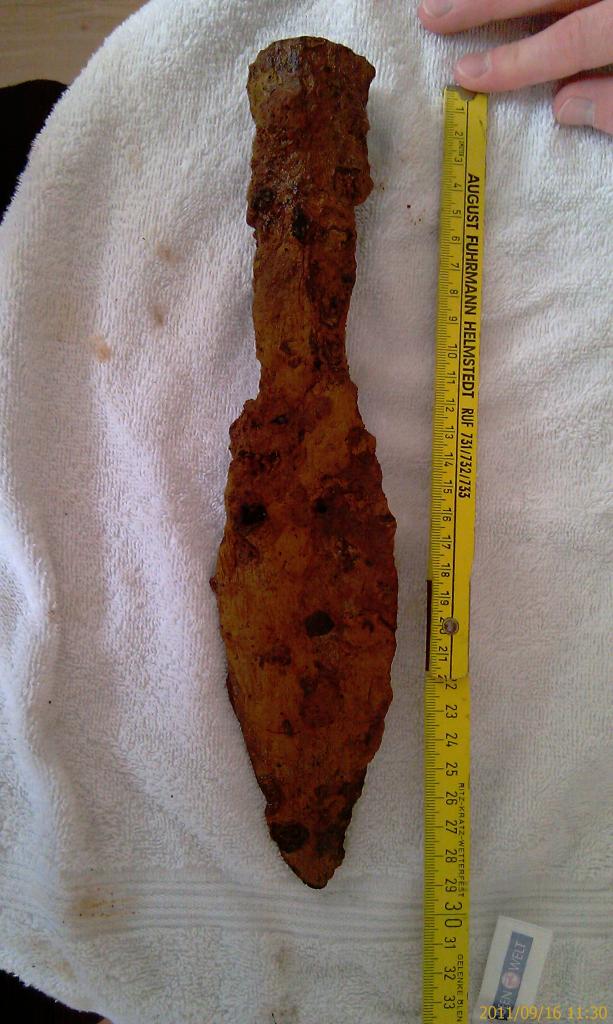 Hallo Leute , so nach etlichen Tagen der Bearbeitung, und leider auch des Verfalls der Saufeder oder Lanzenspitze, melden wir uns nochmal zurück ... Leider wurden einige Ecken nur noch durch den Rost zusammen gehalten ..