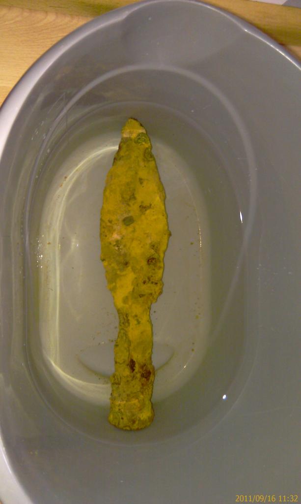 Hallo Leute , vielen Dank erstmal für Euer reges Interesse und die vielen Tips. Ich habe die Saufeder oder Speerspitze erstmal in Natriumhydroxid und ein wenig Spülmittel eingelegt. Der Rost fängt auch langsam an sich abzulösen ... Werde morgen dann Querschnitt der Spitze messen !!! Also wie gesagt, habt erstmal vielen Dank und wem noch etwas einfällt - einfach melden. Freu mich über alles ... einen schönen Abend Euch allen noch