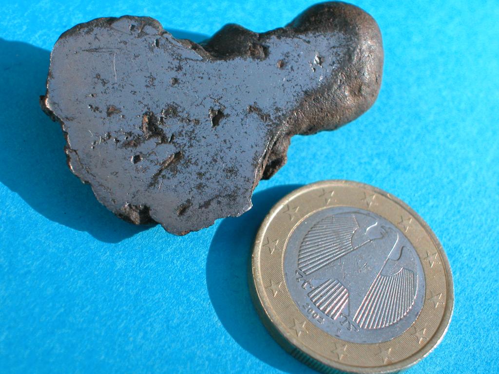 ich habe auf einem Acker einen Klumpen Eisen gefunden. Ist das einfach nur Schlacke oder ein Überbleibsel vom Giessen? Oder kann es vielleicht doch ein Eisenmeteorit sein. Laut Röntgenfluoreszenz Analyse sind es 96% Eisen, 3% Titan, ca. 0,38% Zirconium und geringe Spuren von Nickel. Das Stück ist leider nicht Magnetisch und hat eine Größe von ca. 28mm x 18mm und wiegt 36g.