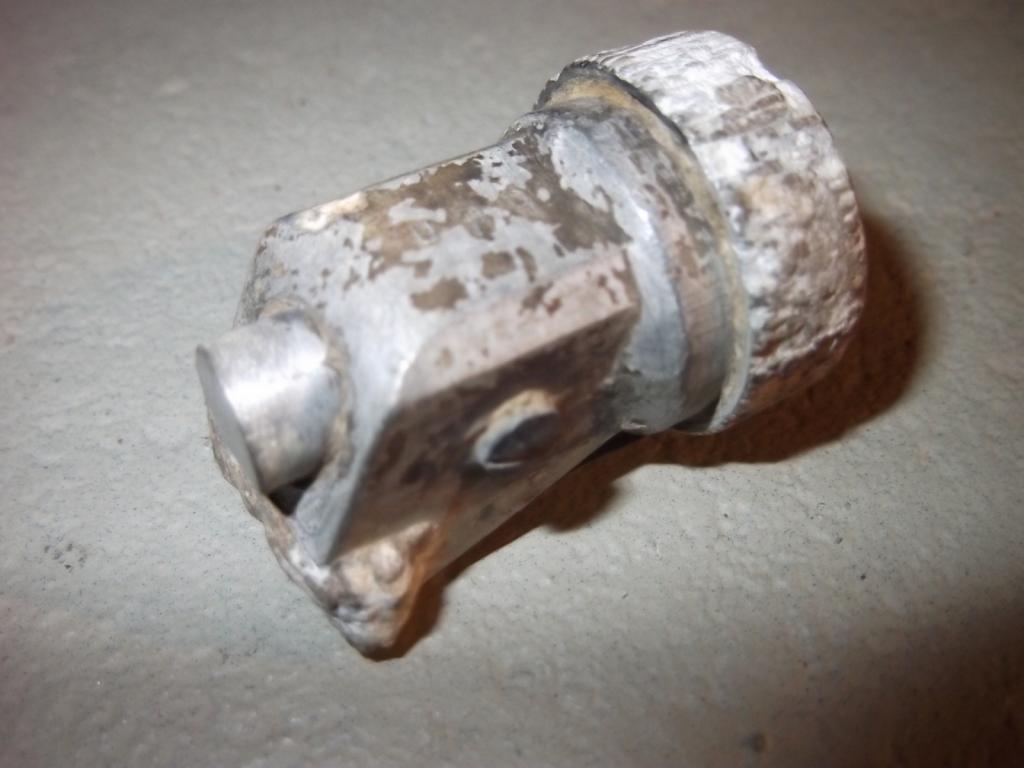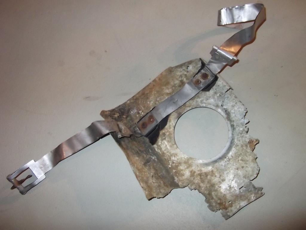 Unter anderem ein größeres Duralblech mit Edelstahl-Laschen/Bändern, runder Stahlring mit Gummidichtungen und braunem holzänlichem Material, Alu-Drehknopf mit Bolzen, Dural-Abdeckung mit "Ausschnitten....