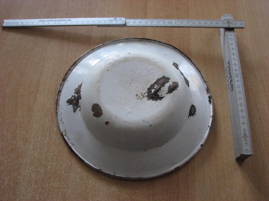 Ich habe mal einen Teller aus einem Schützenloch geborgen,da kommt eine WH-Verwendung eher hin.Dunkelgrün emailliert,sieht fast aus wie eine Teflonbeschichtung.Ein Vergleichsstück habe ich bisher noch nie irgendwo gesehen.Vielleicht ein privat beschaffter Feldteller eines Offiziers: