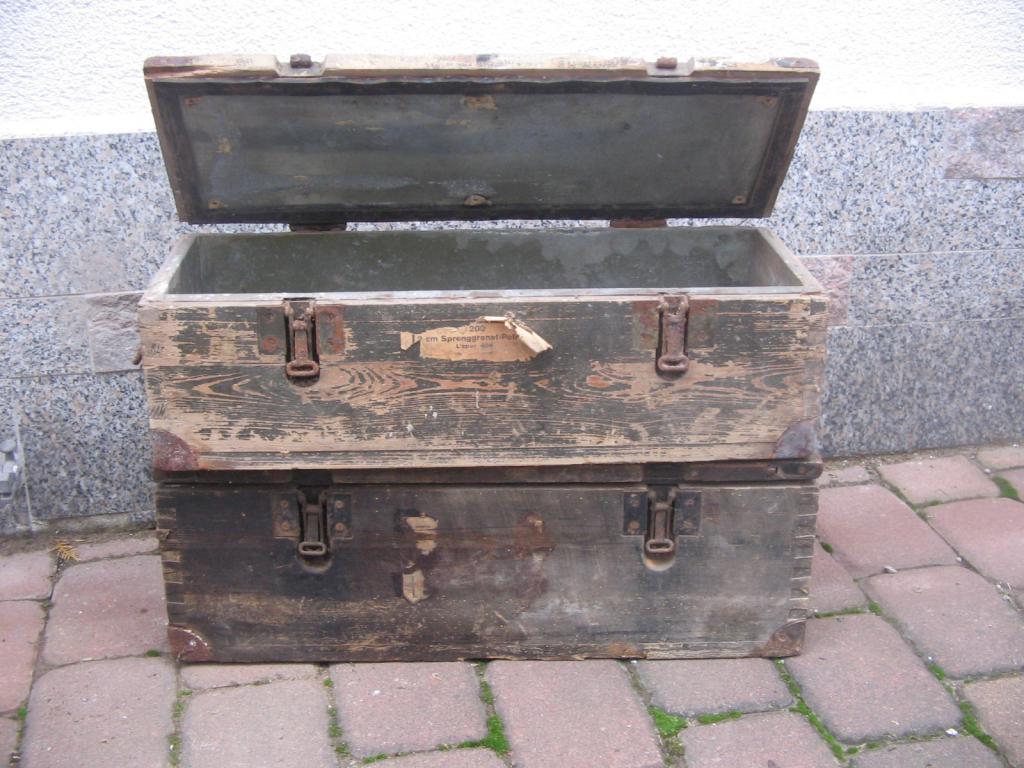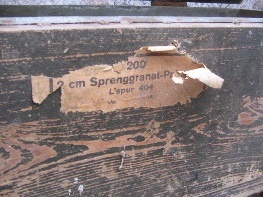 habe insgesamt drei Kisten vor dem Sperrmüll retten können. Hier Aufdruck der einen Kiste: 2cm Sprenggranat-Patronen L'Spur 404 LFG 19. Die andere weißt nur 2cm auf und ist ohne "Beipackzettel"