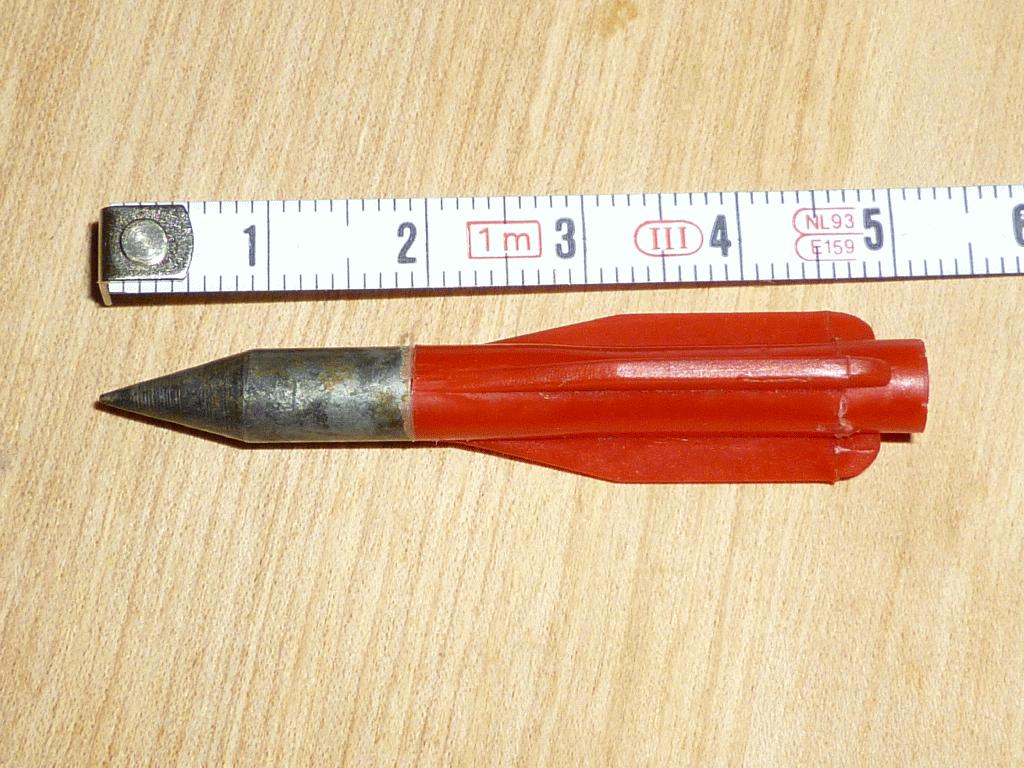 Das Teil ist doch mit Sicherheit ein Bolzengeschoss einer Waffe, aber was für eine?