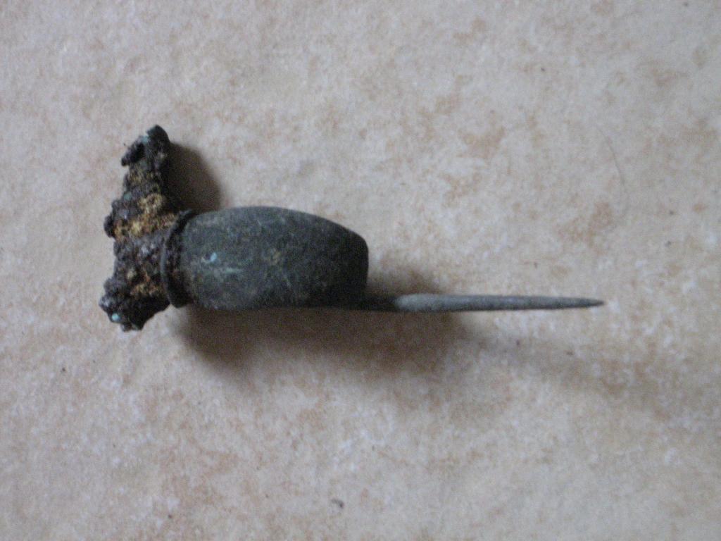 Als ich die Teile von meiner Karre zusammen sammeln wollte, fiel mir das Stück ins Auge. Das Ding ist aus Silber. Da in der Gegend einige Hügelgräber sind hab ich den Verdacht das der eine Sprunghügel ( der schon von Anfang an da war) ein Grabhügel sein könnte.