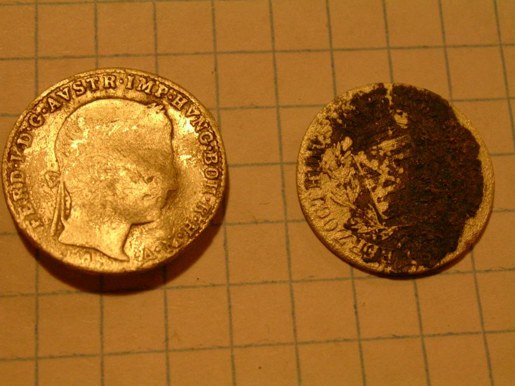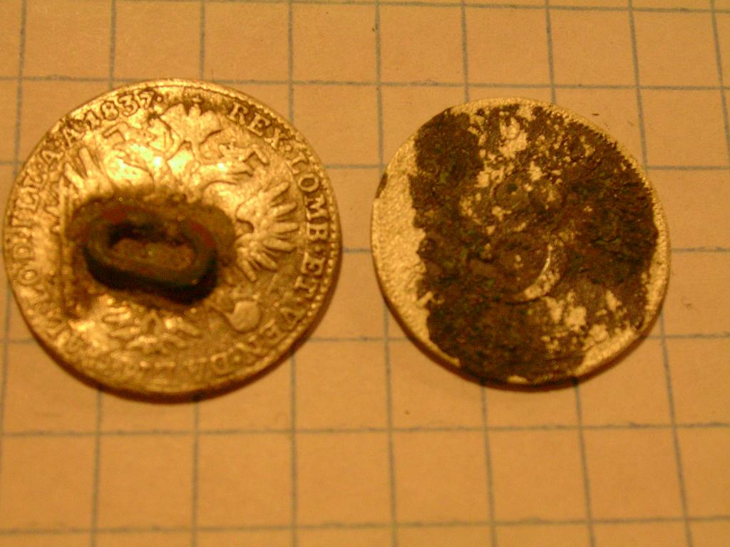 2 Silberne - eine zum Knopf missbraucht.. Die 2. bekomme ich nicht sauber, da sie eine ganz poröse Struktur hat, kann nur irgendwas mit Herzogthum erkennen(bitte um Hilfe)