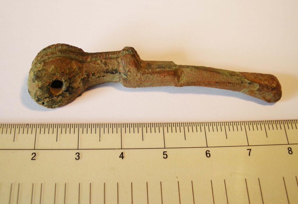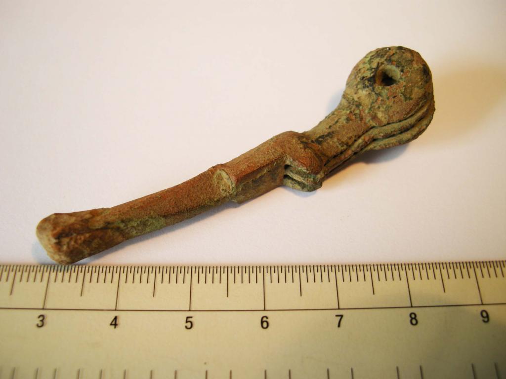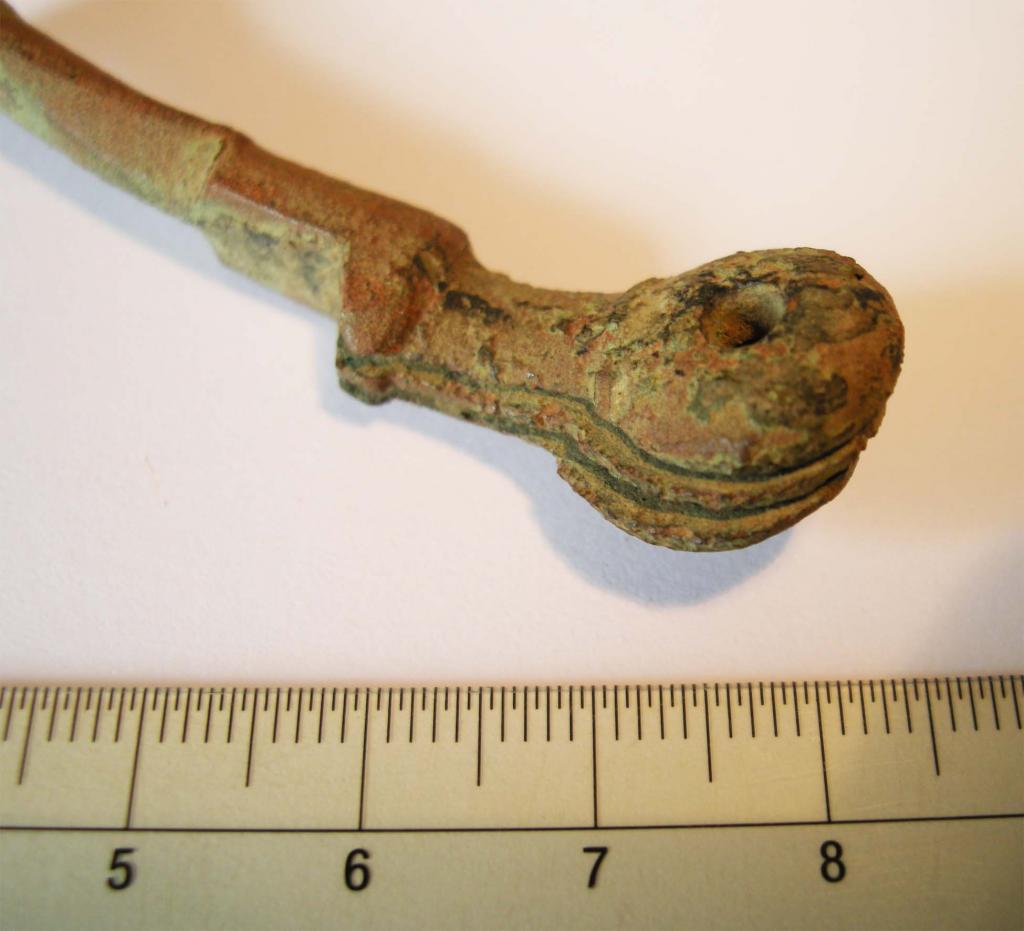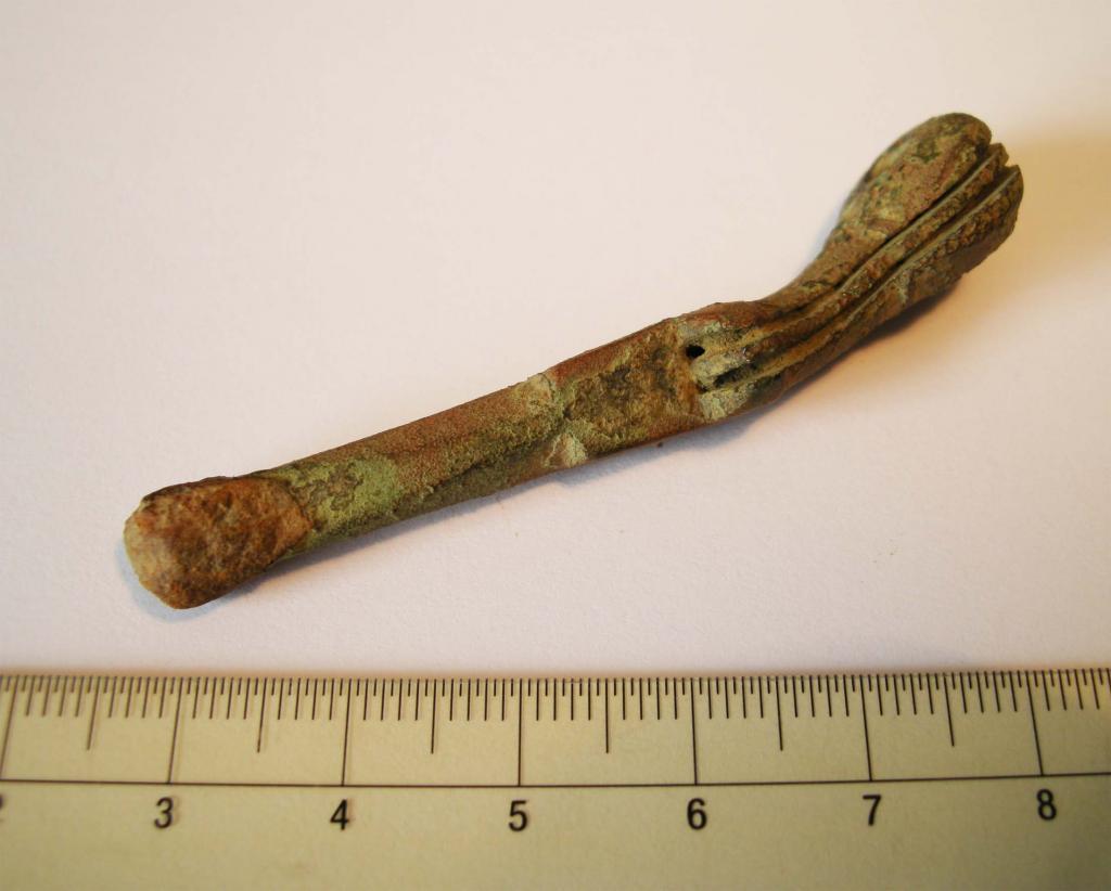 Heute habe ich dieses seltsame Fragment ausgegraben. Material ist Bronze oder Messing.
