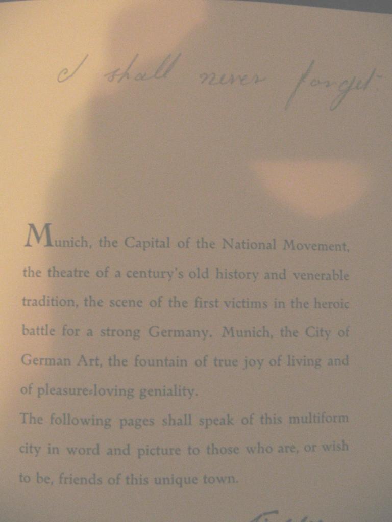 Ich hab vor längerer Zeit mal dieses Buch auf dem Flohmarkt bekommen.Es ist ein Buch über München im Propagandastil der NS-Zeit.Das besondere: Es ist in englischer Sprache.