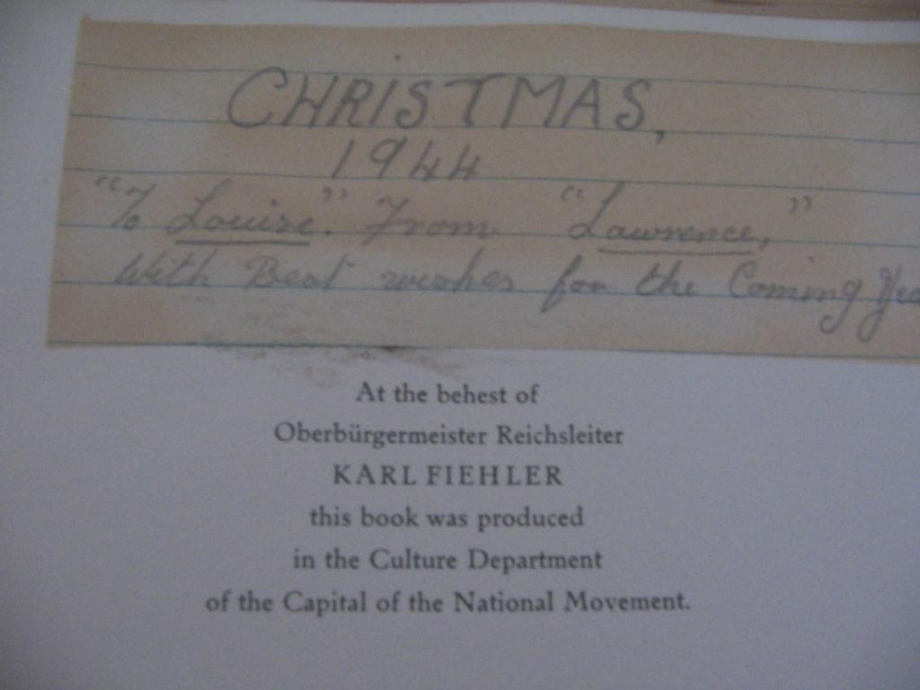 In den Vorsatzblättern sind folgende Widmungen von scheinbar englischen Armee-Angehörigen und Weihnachten 1944 drin.