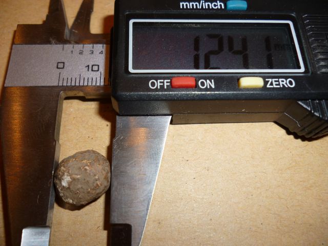 ich bin heute mal wieder auf der Suche nach einer Marschroute aus dem 30-jährigen Krieg gewesen u. hab auf der vermuteten Strecke die beiden abgebildeten Kügelchen gefunden. Die kleinere von Beiden ist schön rund, die größere auf der Liegeseite etwas abgeflacht. Material allen Anschein nach Blei. Wenn man das braune u. weiße Zeug schön vorsichtig entfern, wirds unten drunter schön silbrig. :-)