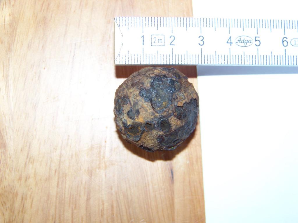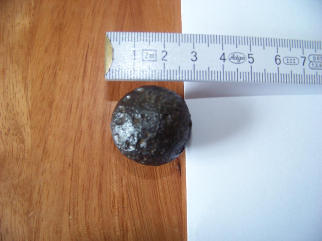 Da mir das "Ding" nicht mehr aus dem Kopf ging, habe ich in diesem Forum etwas gestöbert. Ermutigt durch einige Einträge habe ich die Kugel gesäubert und gewogen und vermessen.