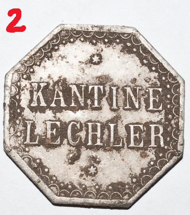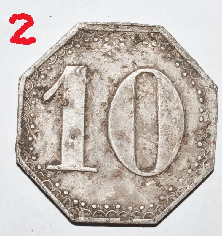 Die Nr. 2 ist eine Kantinen Marke , da Würde mich interessieren auf welches alter ihr Sie schätzt, und was die 10 für einen Wert hat ( vielleicht 10 Reichs Pfennig oder Mark ?), Sie hat einen Durchmesser von 2,3 cm und ist denke ich mal aus Alu.