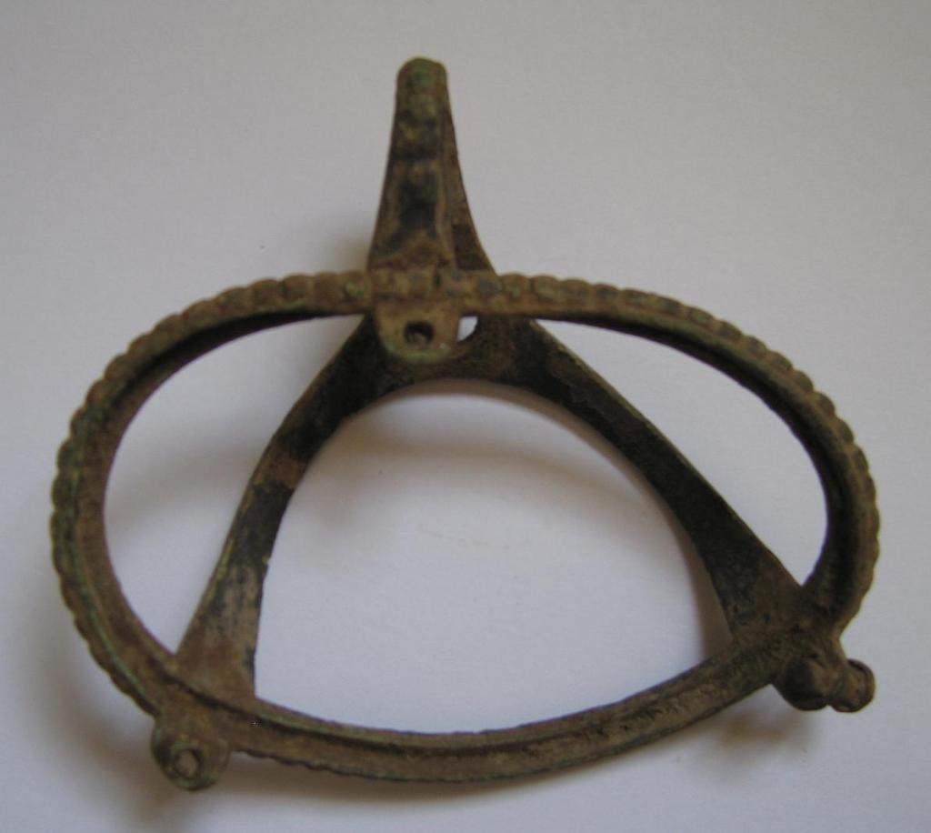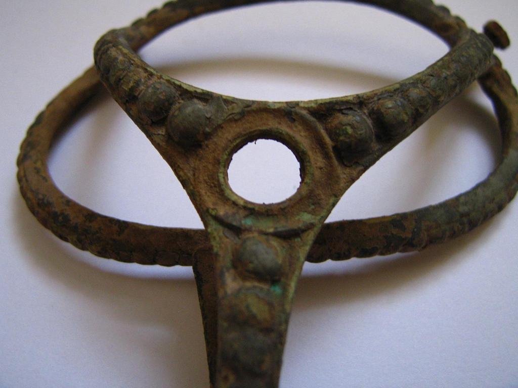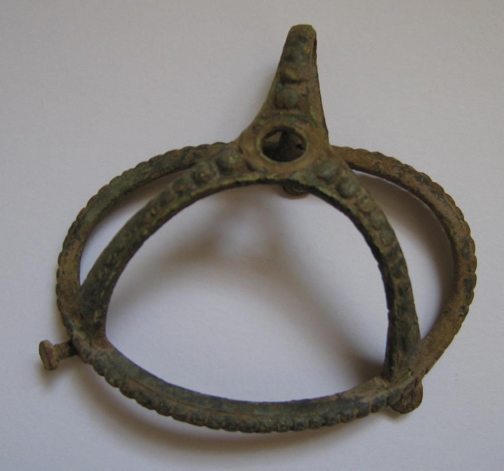 Vor einiger Zeit habe ich dieses Teil in einem sächsischen Wald beim Wandern gefunden. Könnte es einmal eine Krone gewesen sein - beispielsweise von einem Weg-/ Grenzstein? Ich glaube es ist aus Kupfer.