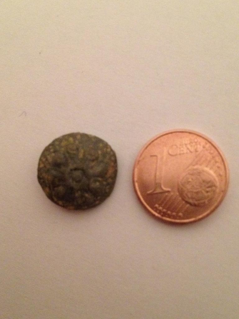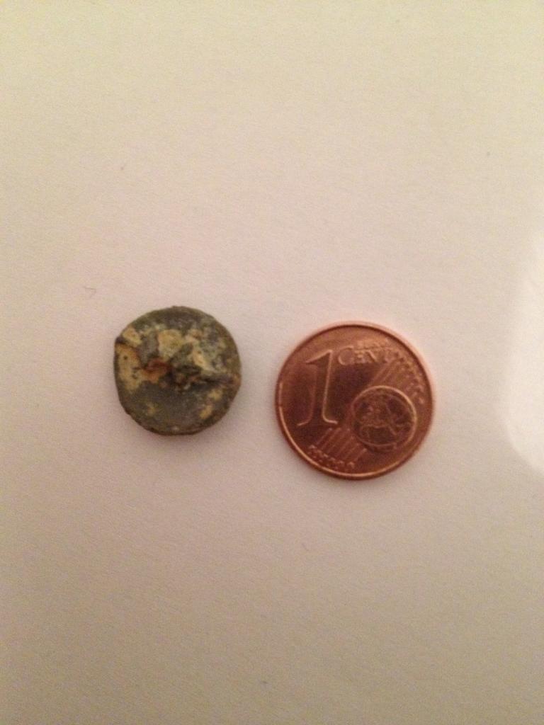 Der Knopf ist ziemlich schwer und wie man sieht kleiner als ein 1Cent Stück.