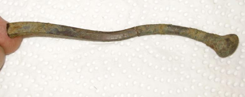 Hier recht merkwürdiges Teil länge ca 15cm . Am ende ein *Knauf,Kugel ding* zur anderen seite wird es wieder dicker .