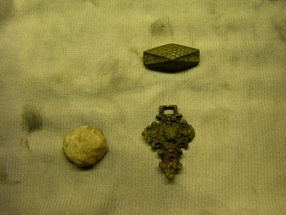 Das runde Ding ist definitiv aus Blei. Erst dachte ich an eine Musketenkugel -