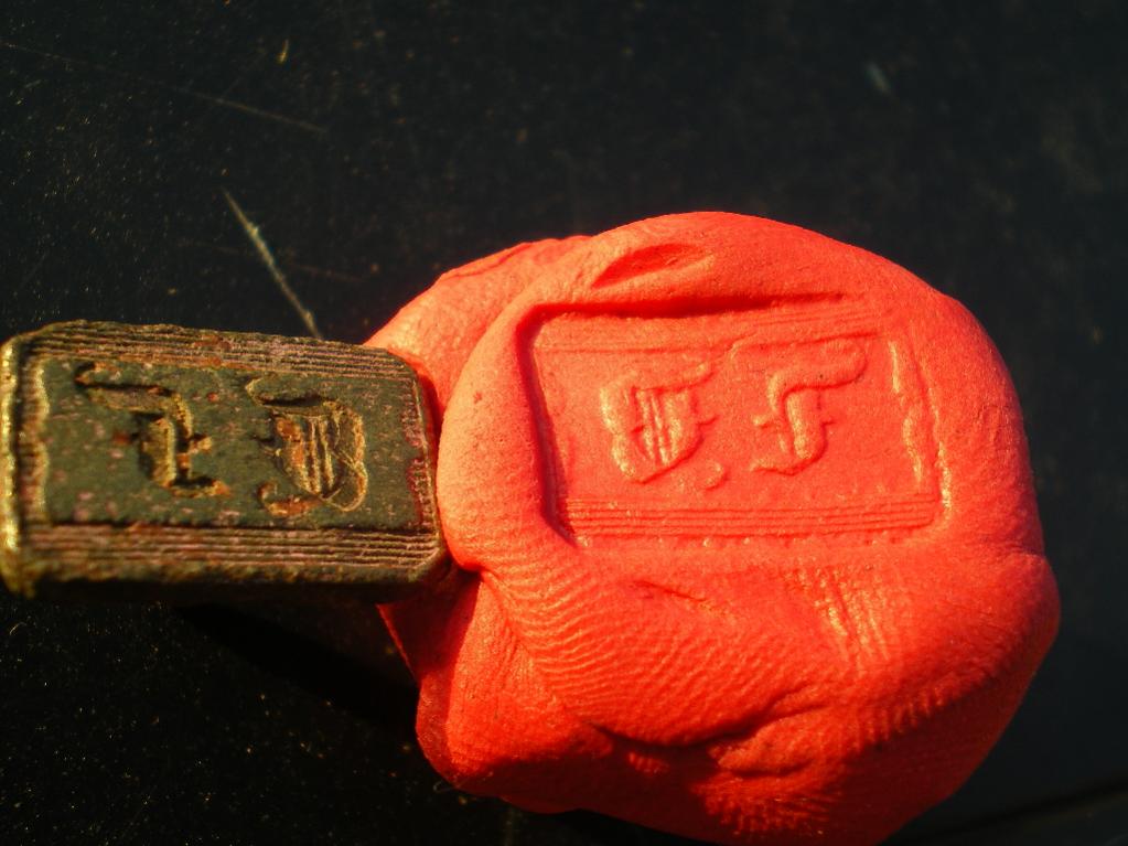 was habe ich hier gefunden,ist das eine Petschaft,oder Siegelstempel ? Ich komme auch nicht dahinter,was das für Buchstaben sind..,da war ich wohl in der Schule gerade auf'm Klo,oder so....Wie alt mag das Teil sein?Abmessungen der Stempelplatte 17x12 mm.