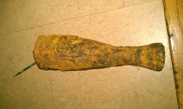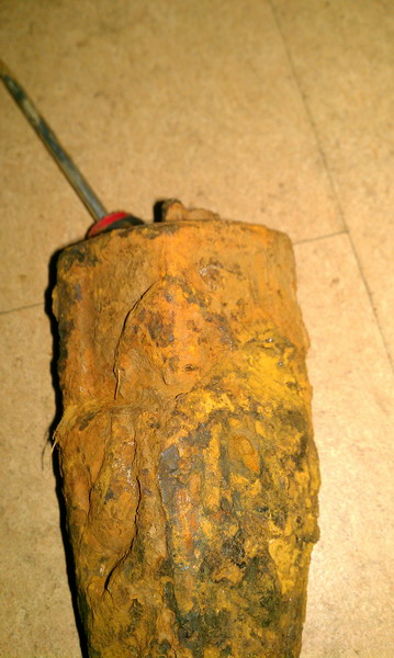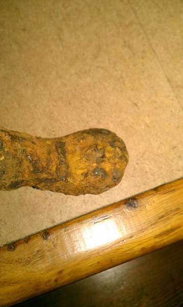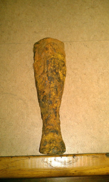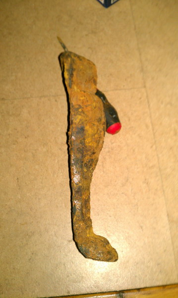 Nach grober Reinigung mit einem Hammer ( war übelst dick mit Rost überzogen), kam so etwas wie ein Bein zum vorschein.