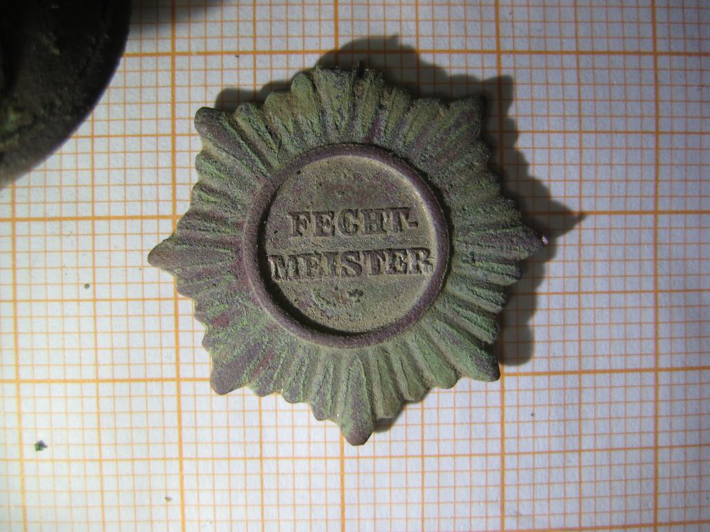 Dazu ein Abzeichen. Fechtmeister ist wohl jemand, der Fechten beibringen darf. Soweit so gut.. Kann jemand etwas zur Verwendung und Herkunft des Abzeichens sagen? Ich komme mit dem Monogramm leider nicht weiter..