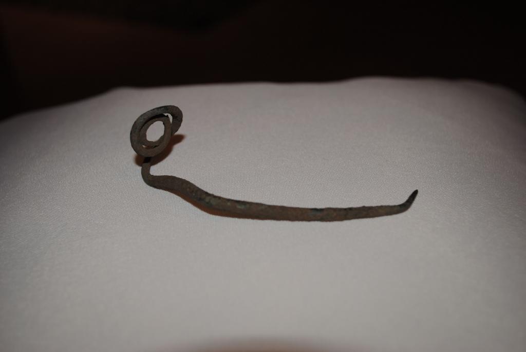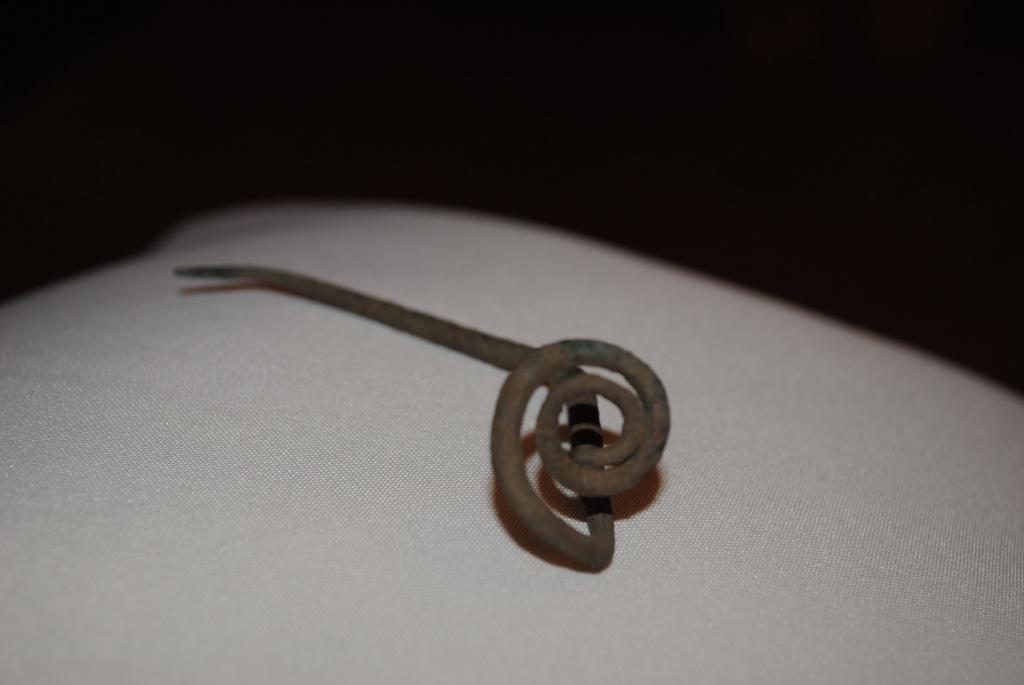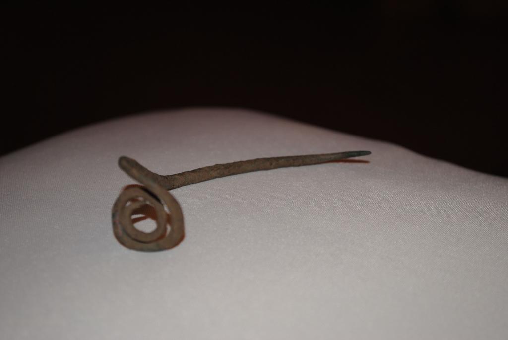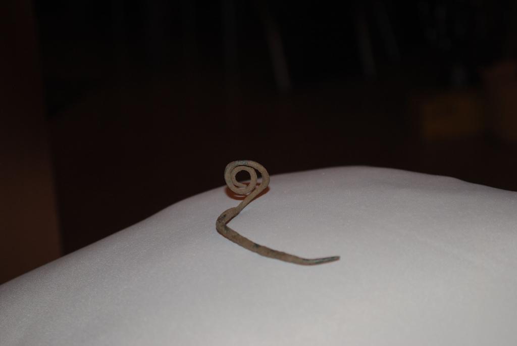 ich denke "ich hoffe" das es sich hier um eine Gewandnadel handelt. Ich gehe davon aus, dass es sich um eine Bronzene Gewandnadel handelt.