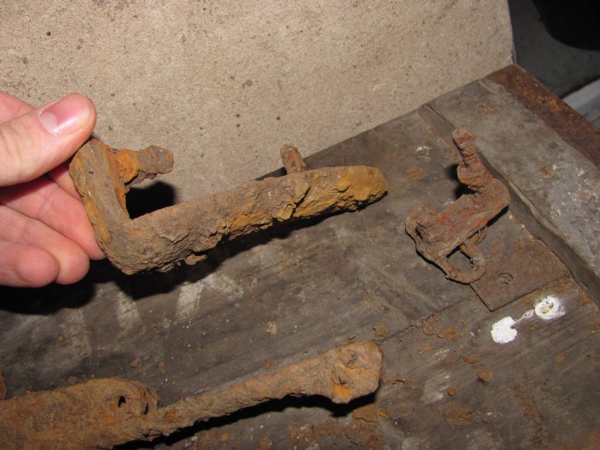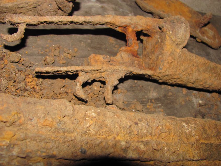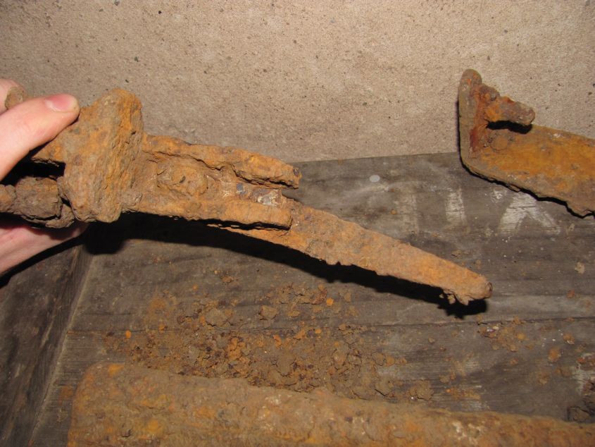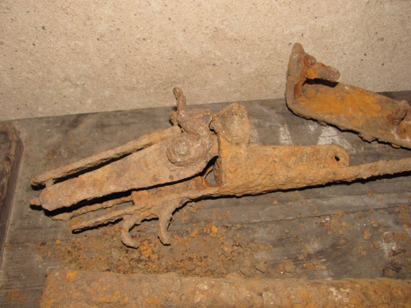Der Lauf war wohl entweder zum knicken (Hinterlader) oder abnehmbar. der untere Hebel scheint hierfür verwendet worden zu sein.