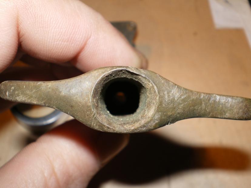 Moin Buddlers...das Teil hab ich gestern unmittelbar vom Waldesrand. Drumrum Äcker. Besteht komplett aus Messing,keinerlei stempelungen. Meine erste Vermutung: Heftstück von so nem wetzstahl. Aber das Alter? Kennt das jemand so? MfG Matze