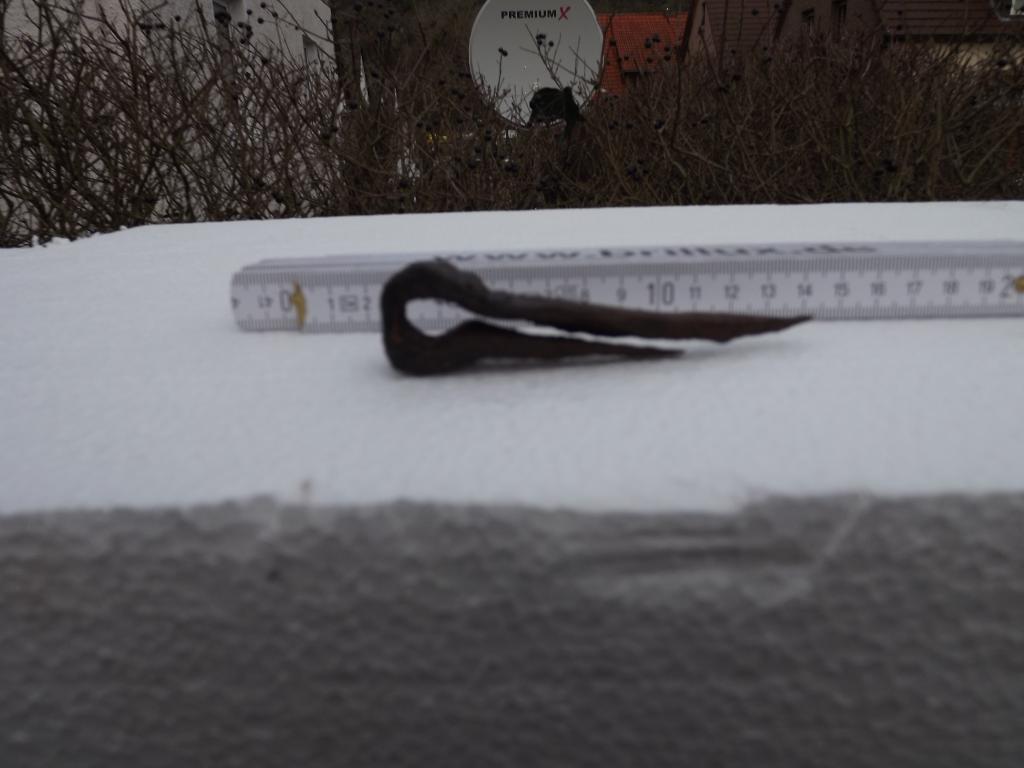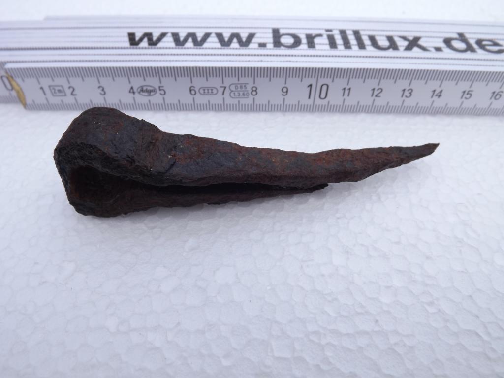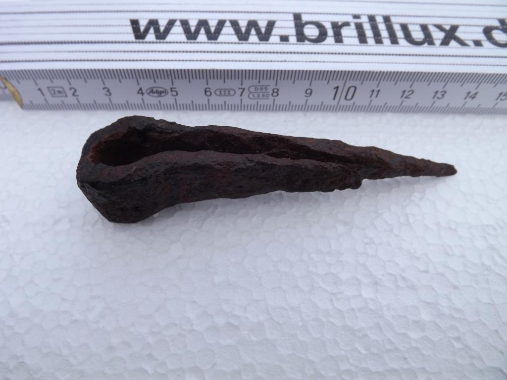 Denke in der Öse war früher ein Ring durchgezogen und das ganze dann in Holz eingeschlagen. Für was auch immer......