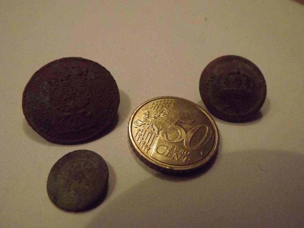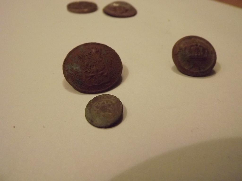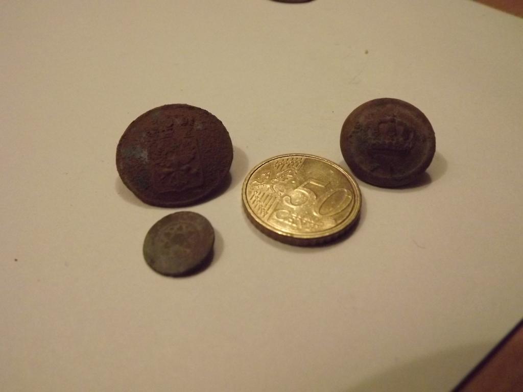 Hi,der mit nen Adler ist nen Preußen Knopf,mit der Krone ist aus Kaisers Zeiten.Schau mal im Netz unter Scheibenknöpfe,da findest die.m.f.g.Rico;-)))