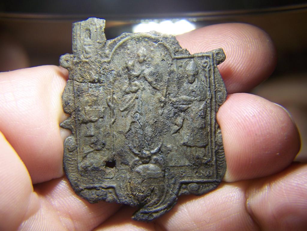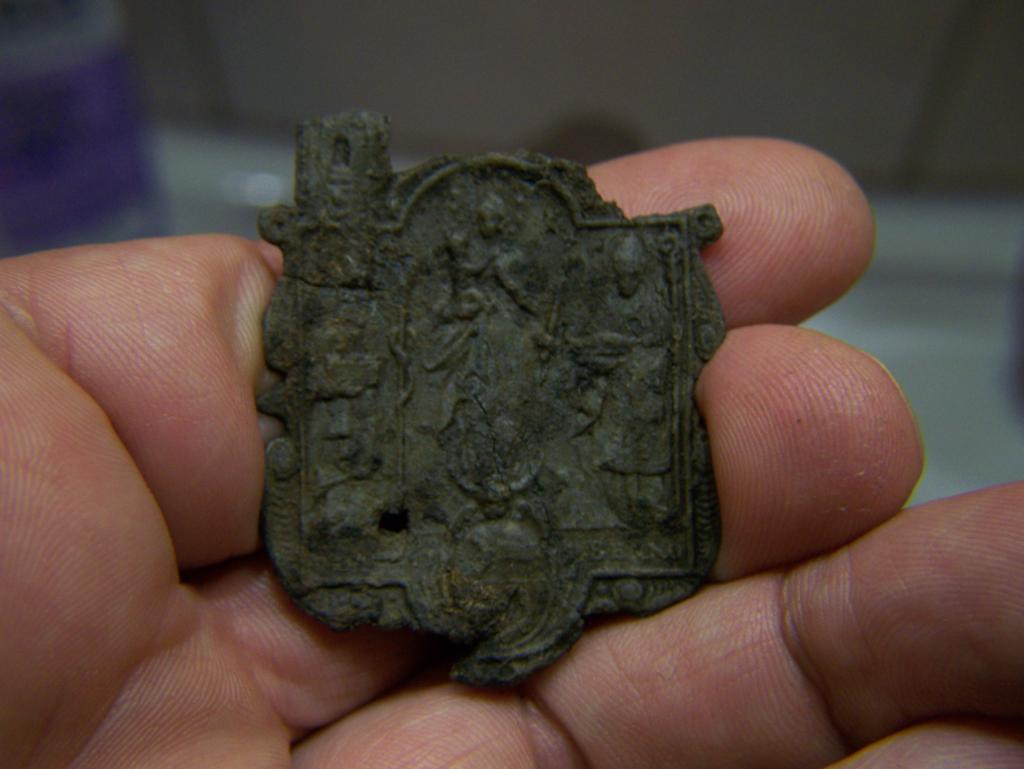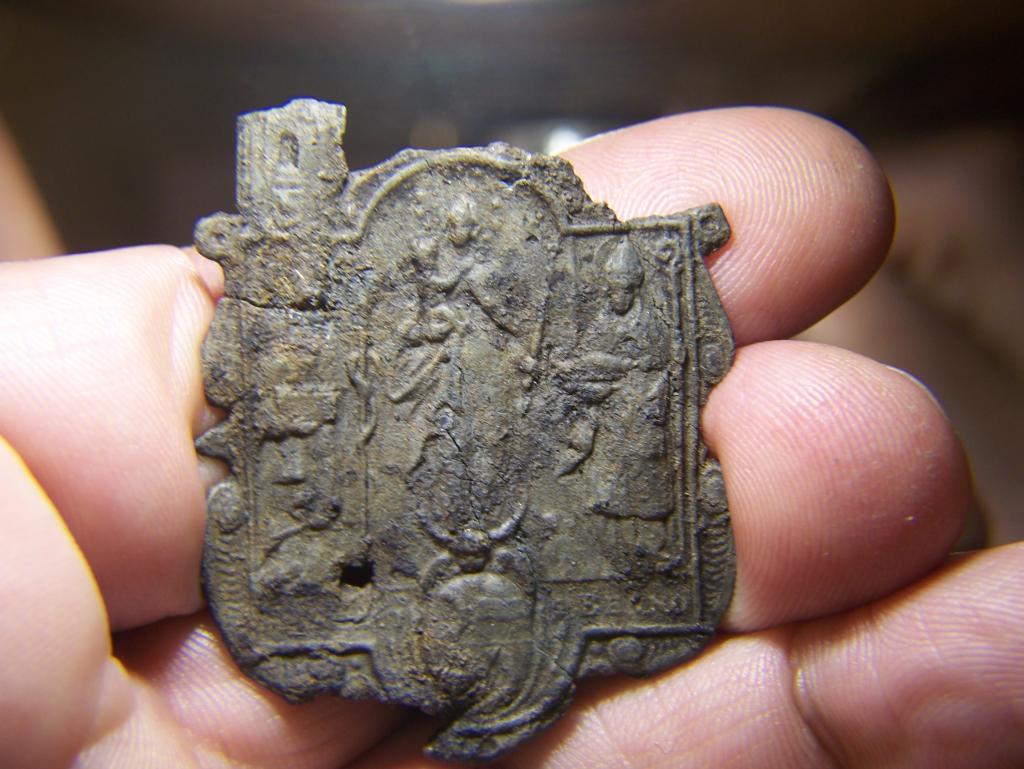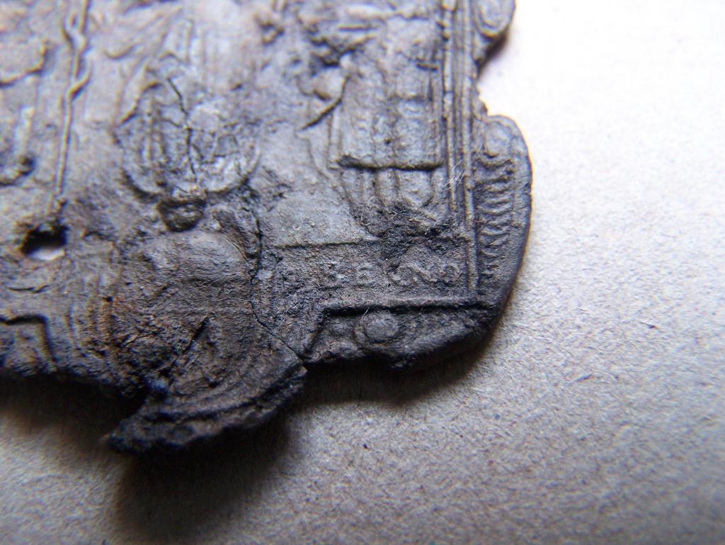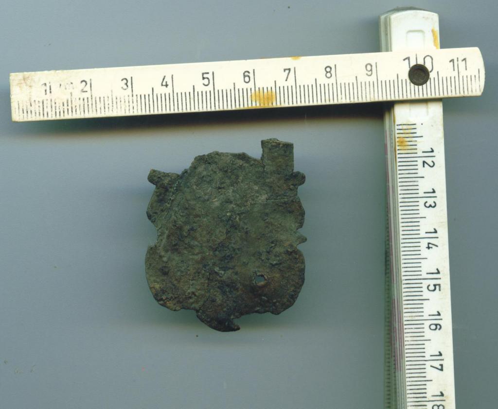 Das Material ist ziemlich spröde, 1,5mm stark und wahrscheinlich aus Blei.