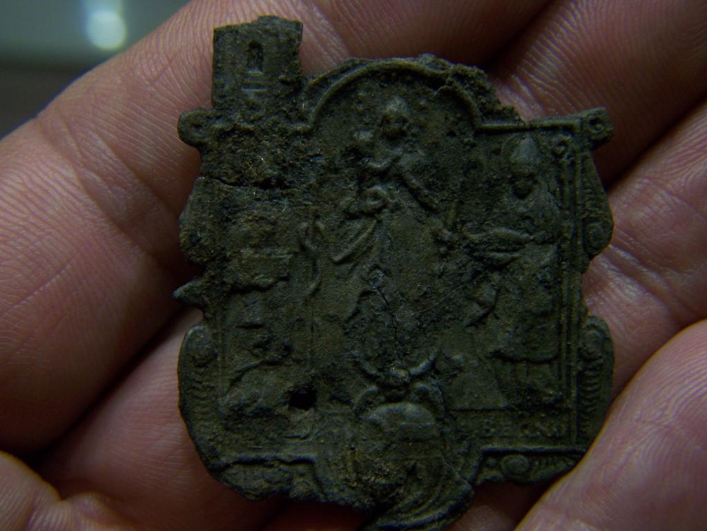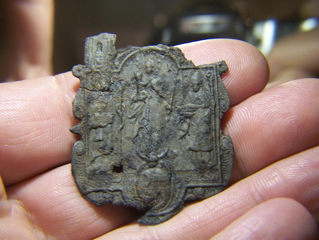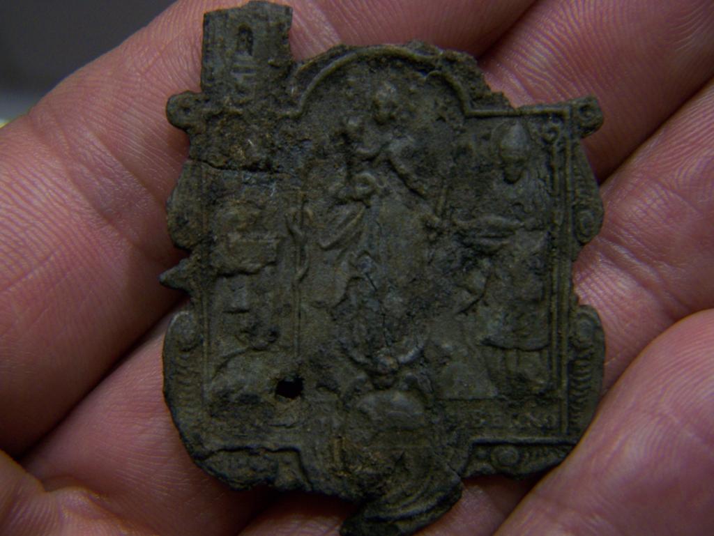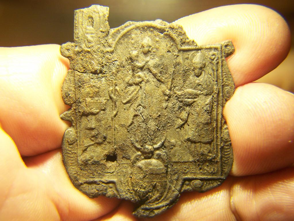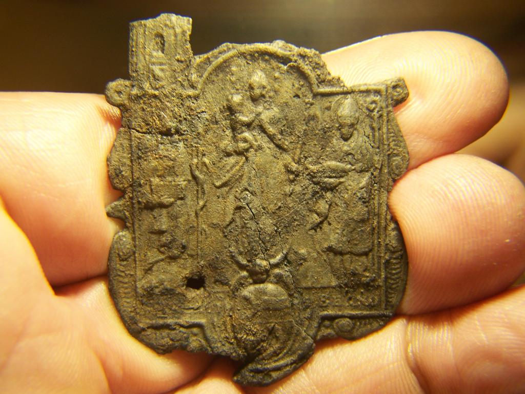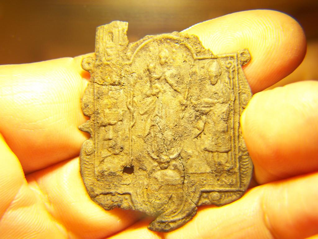 Das Material ist ziemlich spröde, 1,5mm stark und wahrscheinlich aus Blei.