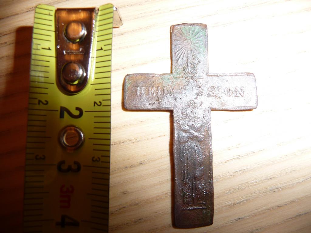 Das Kreuz hab ich auch gefunden vielleicht wissen ja die Profis was dazu ist sehr dünn fast wie Blech. Zu Lesen ist Heil ( oder Heils) Mission.