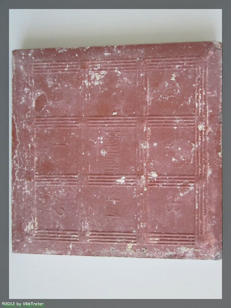 Meines Wissens nach beziehen sich solche Kürzel immer auf den Besteller der Ware,oder direkt auf das Bauwerk für welches die Fliesen bestimmt waren.Ich suche nun nach Info-Material,das diese These untermauert.