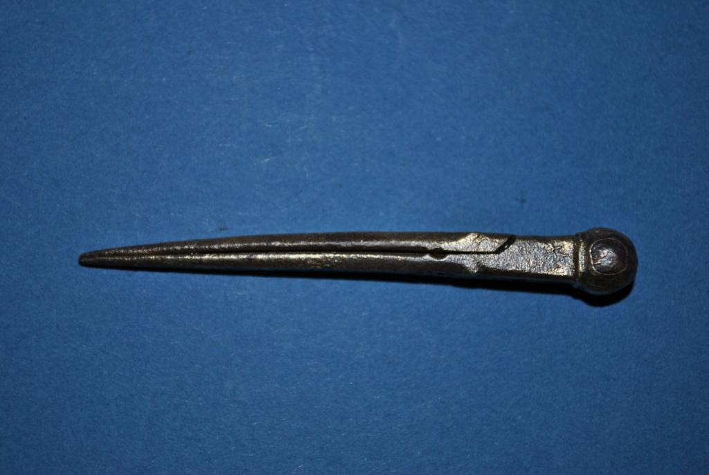 Meine erste Vermutung war, dass es sich hier (mal wieder) um einen verlorenen Splint aus der Landwirtschaft handelt. Leider ist im Web nichts Vergleichbares zu finden das bei einer Bestimmung, für den Gebrauch und die Zeitliche Einordnung hilft.