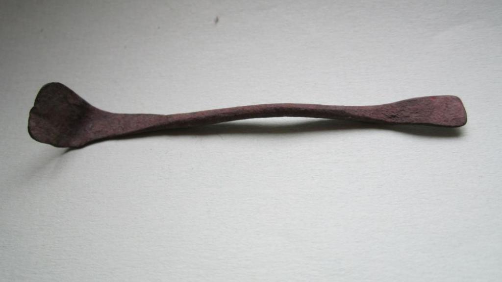Hallo auch,diesen Spatel habe ich die Tage gefunden .Länge 7cm die flachen Flächen haben eine Breite von 10 und 6mm.Material ist wie gesagt Bronze .